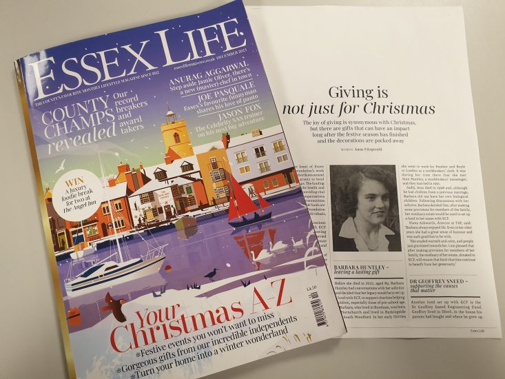 Before Barbara Huntley died in 2022, aged 89, she had conversations with her solicitor and decided that her legacy would be to set up a fund with ECF to support charities helping children, especially those of pre-school age.